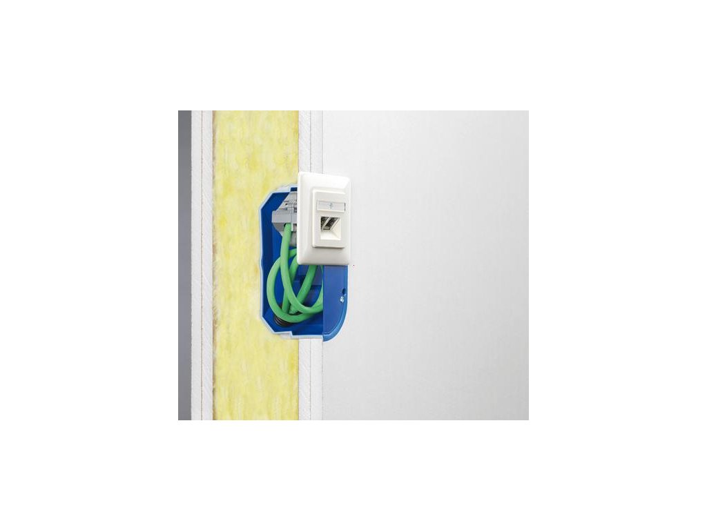 Dvojitá zvukově izolační elektro krabice vhodná pro akustické příčky a předstěny do celkového útlumu 78 dB. Aplikace do duté stěny s tloušťkou desky 7 - 40 mm. Hloubka krabice 70 mm. Průměr vrtání 74 mm, vzdálenost středů vrtání 71 mm. Rozteč upevňovacích šroubů je 60 mm. 4 kabelové vstupy do 11,5 mm.